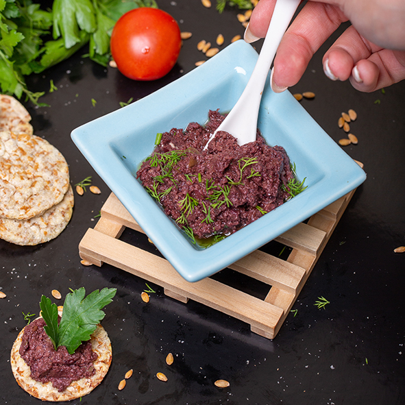Η πάστα ελιάς, από μαύρες ή πράσινες ελιές, αποτελεί ένα γρήγορο, απολαυστικό, αυθεντικό και υγιεινό σνακ, ένα ορεκτικό για κάθε στιγμή της ημέρας! Απολαύστε την σε ψωμί ή παξιμάδι, ή προσθέστε την στις σαλάτες. Απολαύστε το με το πρωινό σας σε σάντουιτς με τομάτα και φέτα, προσθέστε πινελιές με πάστα ελιάς στο γεύμα σας, όπως στα ζυμαρικά, τα λαχανικά, το κρέας ή επιλέξτε την για ένα ελαφρύ βραδυνό.