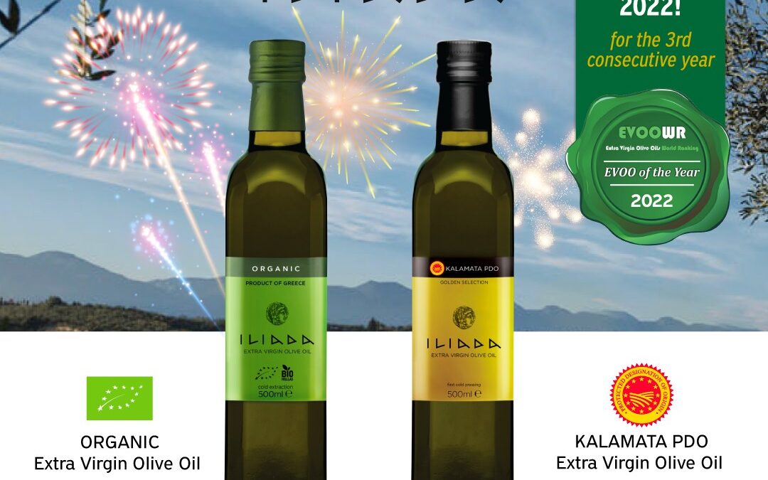 31 Ιανουαρίου, 2023Διπλή βράβευση έλαβε η ναυαρχίδα των προϊόντων της ΑΓΡΟΒΙΜ Α.Ε. που φέρει το όνομα ILIADA ως Εξαιρετικό Παρθένο Ελαιόλαδο της Χρονιάς 2022, διάκριση που λαμβάνει εδώ και 3 συναπτά έτη! Συγκεκριμένα, οι κωδικοί ILIADA Gold Καλαμάτα ΠΟΠ Εξαιρετικό Παρθένο Ελαιόλαδο και ILIADA Emerald Οργανικό Εξαιρετικό Παρθένο Ελαιόλαδο , απέσπασαν τον τίτλο “Extra Virgin Olive Oil of the Year” για τη χρονιά που πέρασε, σύμφωνα με το EVOOWR (Extra Virgin Olive Oils World Ranking), έναν από τους σημαντικότερους θεσμούς στον κλάδο.